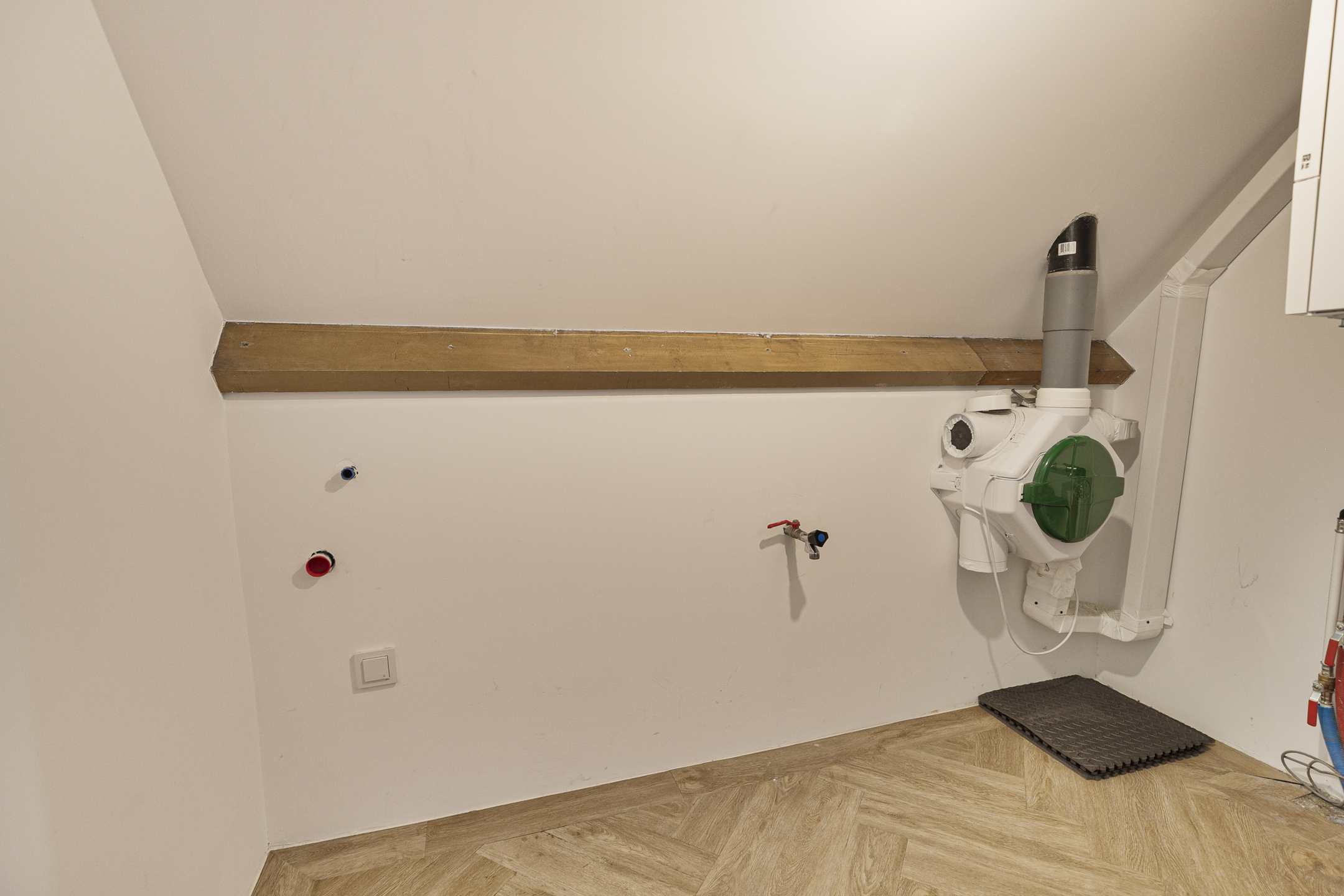 The kitchen has been recently renovated and is equipped with all basic needs. It includes a large freezer and refrigerator, a dishwasher, a Quooker, and an induction hob. The window and the glass door to the balcony provide plenty of daylight in the kitchen.